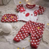 Ajuar de jersey estampado lunares. Batita manga corta, delantero liso con cara de koala aplicada. Pantaloncito, gorrito. Bordado logo