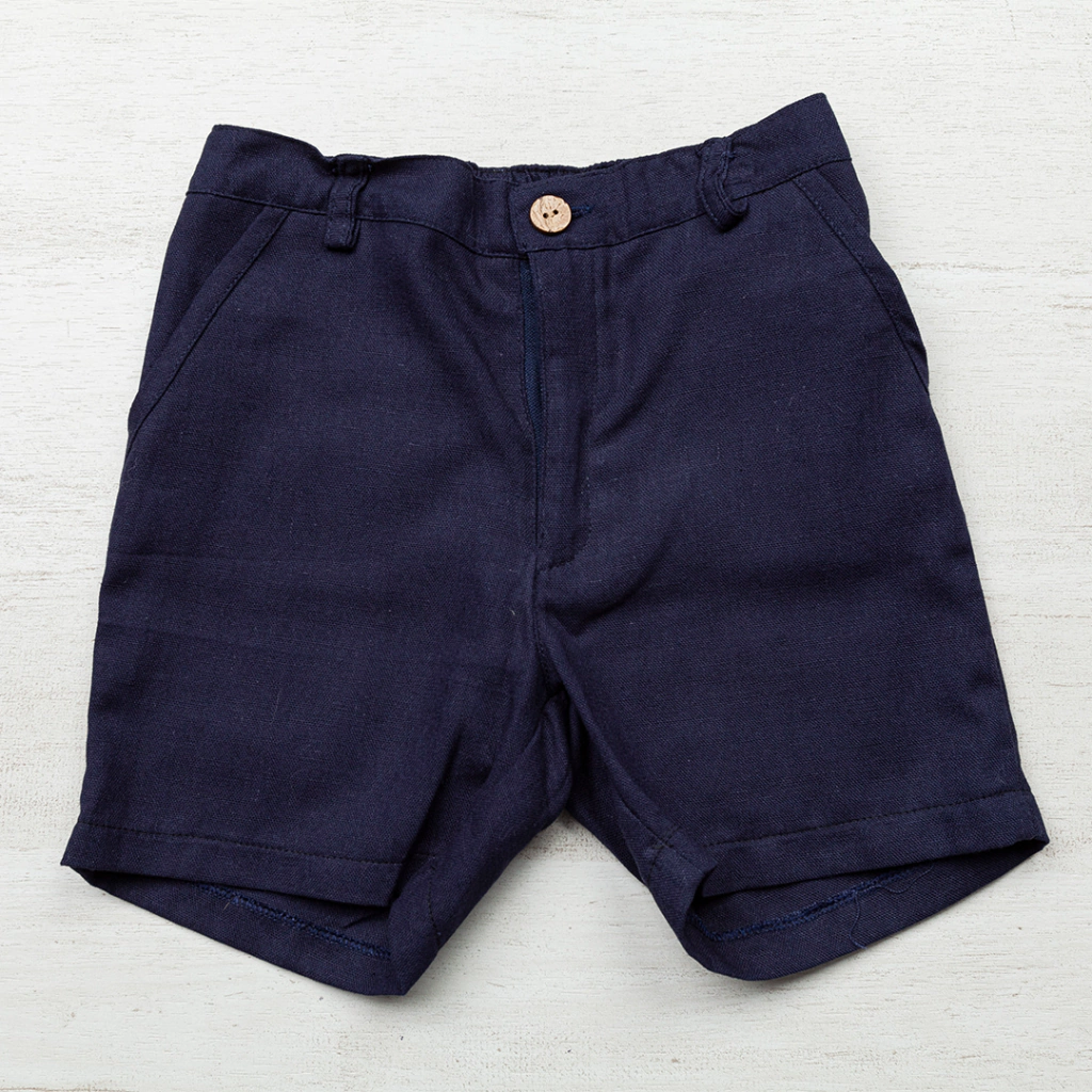 Bermuda de Lino. Con bolsillos laterales, cintura con elastico, y pasacintos, bolsillos traseros