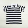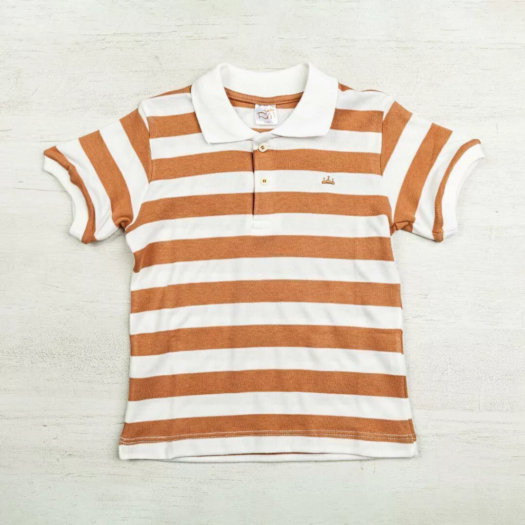 Chomba de INTERLOK TEJIDO RAYADO. Cuello tejido, manga corta con puños tejidos. Bordado logo