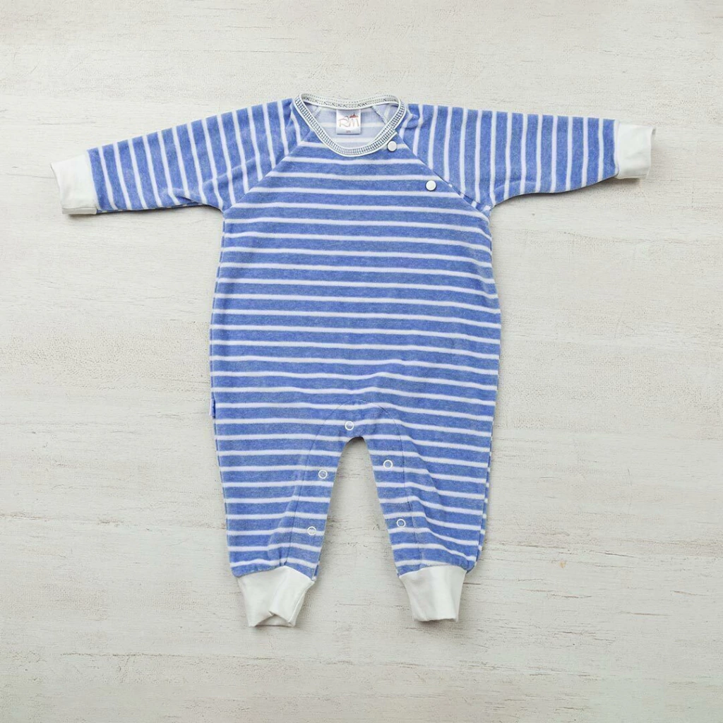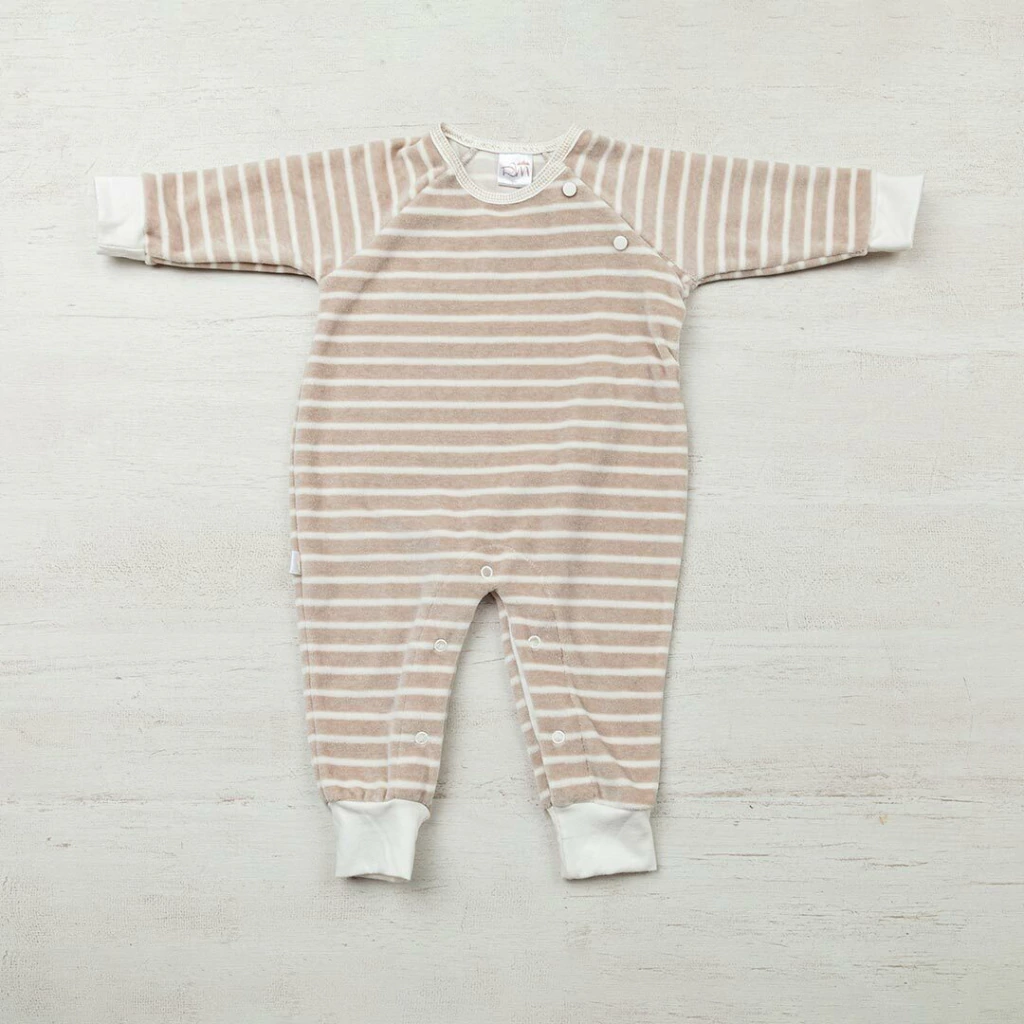 Enterito de plush rayado, manga ranglan con botones en delantero