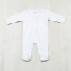 Enterito de ALGODÓN PIMA LISO .Abierto en delantero. Cuello mao. Puños en mangas y piernas. Con picot