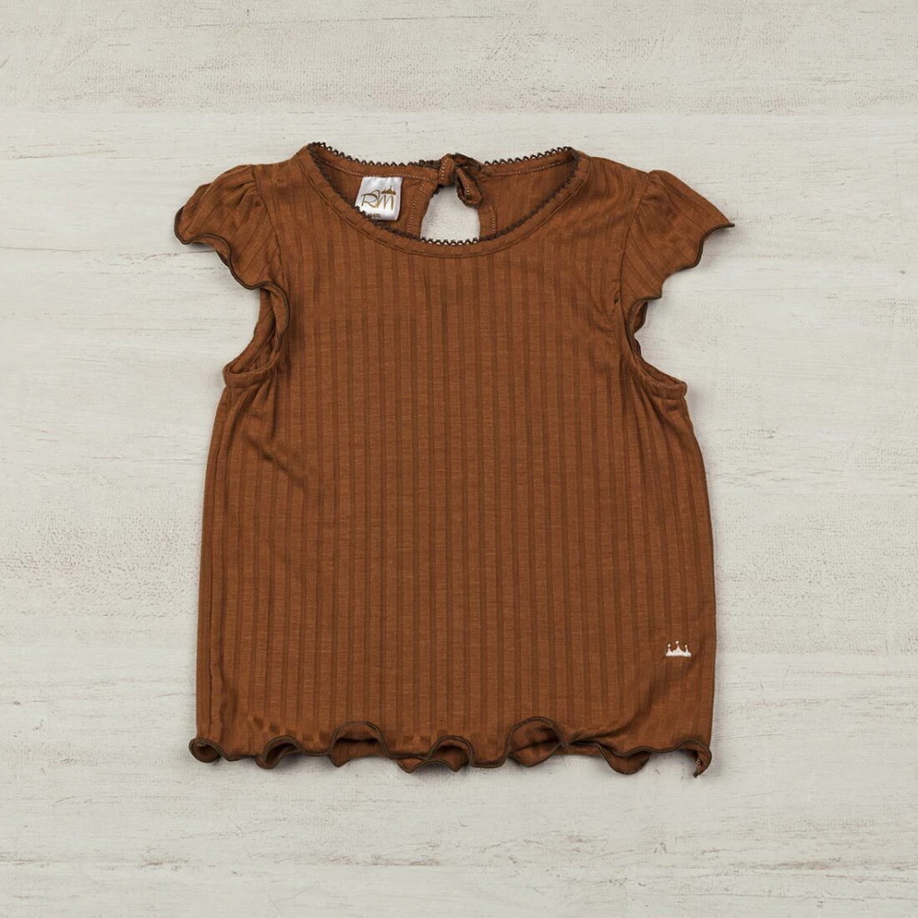 Remera de Morley. Manga cortita fruncida. Con moñito. Bordado logo