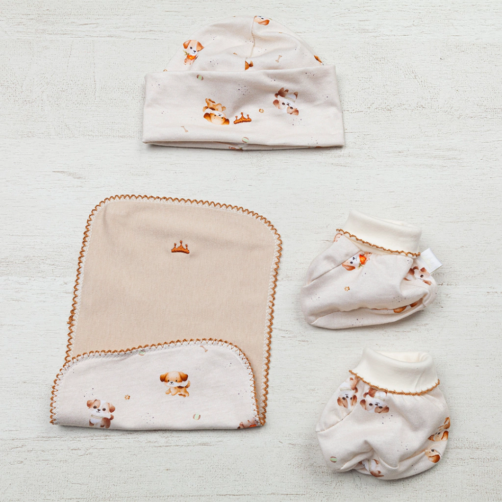 Set de gorro, batita y pantufla de algón pima.
