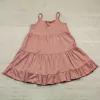Vestido de modal vizcosa. Con voladados bien fruncidos. Tiras cruzadas. Bordado logo